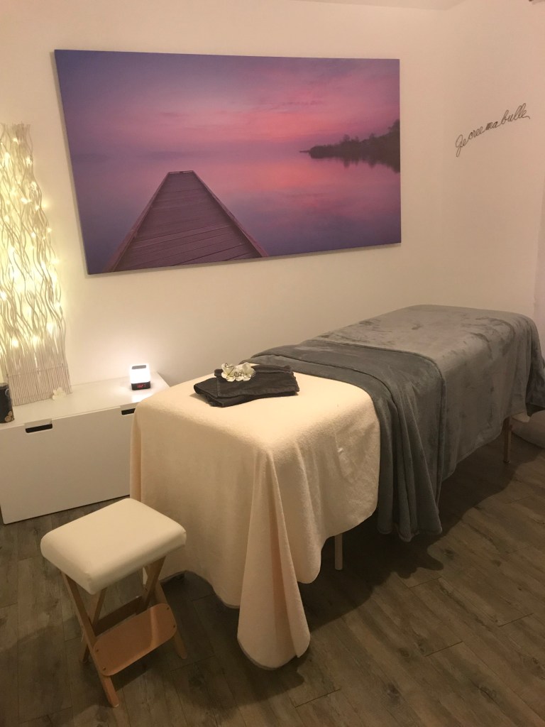 Au fil de mes formations, j’ai monopolisé une pièce de mon domicile pour pouvoir m’entraîner et je l’ai vite transformé en un vrai espace dédié à la détente ; ce métier était devenu une évidence pour moi.